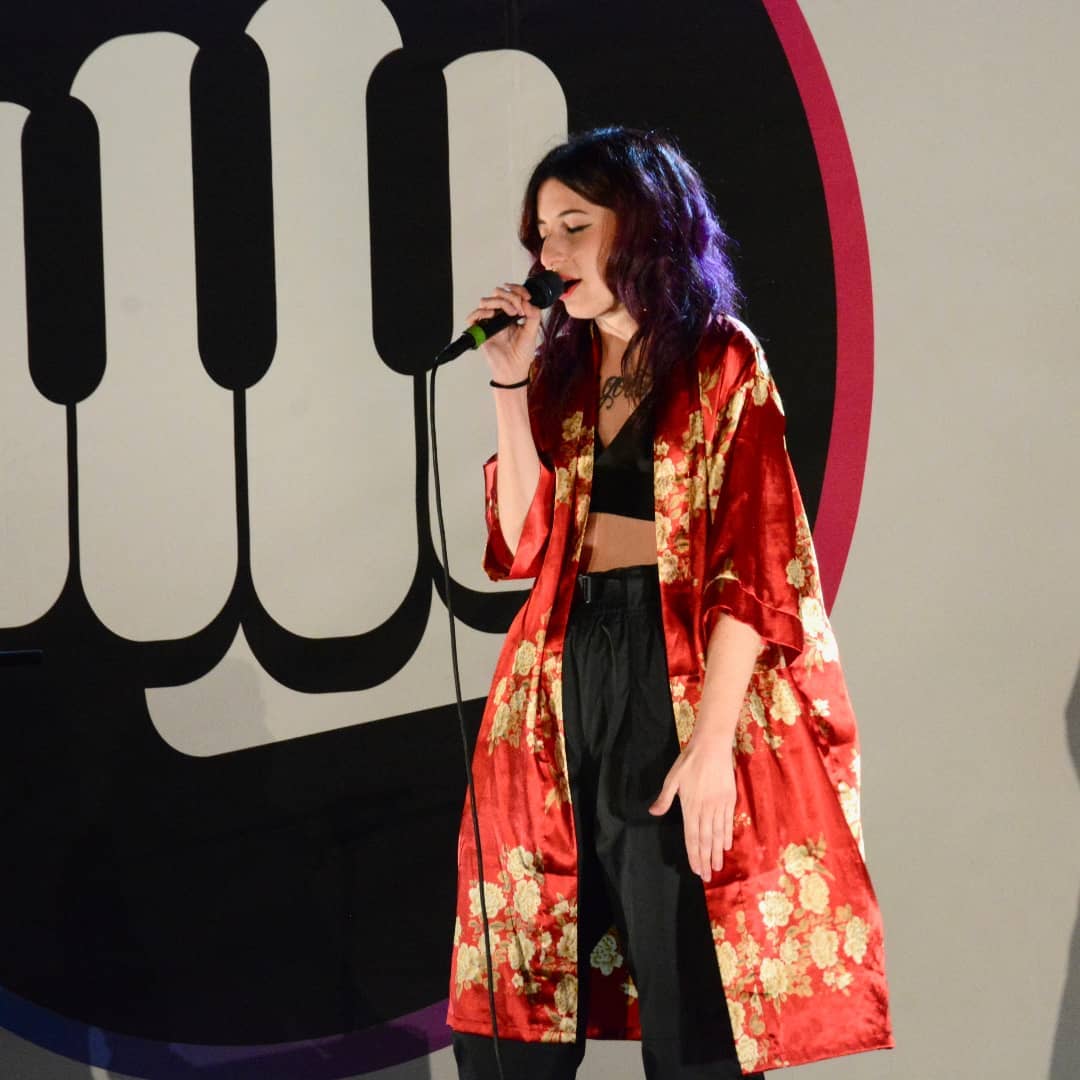 Subito dopo è stata la volta di Sugar, giovane artista rap ed educatrice veronese vissuta per un periodo in Francia, esperienza importante che ha segnato la sua vita e che l’ha portata a scegliere il francese in parte dei suoi brani. La sua musica svela appieno grinta e sensibilità: Hikikomori è un pezzo che brucia, che sputa fuori la personalità dell’artista, il suo desiderio di libertà e crescita personale. L’altro suo brano è stato accompagnato al pianoforte dallo stesso Lettieri facendo emergere l’amicizia e il sodalizio artistico nato in Calabria. La scelta di portare sul palco Cara maestra di Tenco è dovuto invece alla volontà di denunciare ipocrisie e perbenismi contrari al rispetto della persona e attenti solo alle apparenze.
