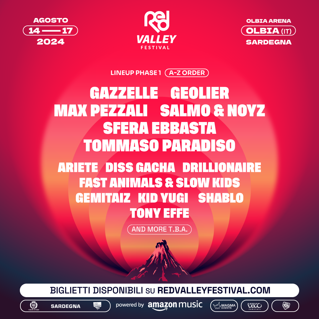 Con un’affluenza di oltre 70mila persone nel 2022 e oltre 105mila persone nel 2023, il RED VALLEY – powered by Amazon Music, prodotto e organizzato da Magma Events e Vivo Concerti, con la partnership radiofonica di Radio 105 – annuncia la lineup per l’edizione 2024: 14-15-16-17 agosto 2024 all’Olbia Arena di Olbia con concerti live, dj set, oltre ad attività collaterali all’insegna della musica e del divertimento a partire dalle ore 18.