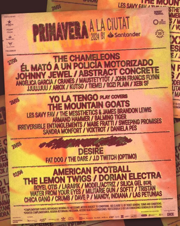 Primavera a la Ciutat sarà ancora una volta l’equivalente di una seconda vita per il festival. Una quindicina di artisti e band, la cui presenza era già stata confermata in una delle giornate principali del festival, si potranno vedere anche in altri locali di piccole e medie dimensioni di Barcellona. Come gli American Football, emblemi dell’emo del Midwest. E gli Yo La Tengo, che approfitteranno del loro concerto per proporre un repertorio speciale di cover dei loro gruppi preferiti. E Dorian Electra, icona del pop digitale. El Mató a un Policía Motorizado, ambasciatori del rock di La Plata su questa sponda dell’Atlantico. E Balming Tiger e Silica Gel, i due rappresentanti sudcoreani in cartellone. E The Lemon Twigs, Water From Your Eyes, Model/Actriz, Voxtrot, Royel Otis, Militarie Gun, Crumb e Mandy, Indiana. Insomma, il programma di Primavera a la Ciutat sarà ricco di seconde opportunità.