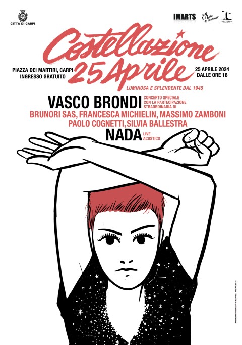 “Questa Costellazione 25 aprile che mi sono immaginato è luminosa e splendente dal 1945Quando il Comune di Carpi mi ha chiesto di immaginare qualcosa di speciale per questa giornata ho subito pensato a questo concerto corale e ho voluto coinvolgere altri musicisti, cantanti, scrittori, scrittrici. Questa celebrazione deve restare sempre viva, sempre collettiva.