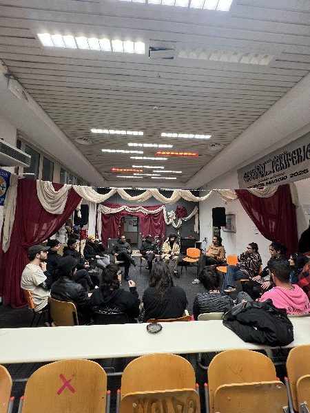 Un altro tema importante è stato lo spazio in cui ci si trovava: l’Aula Studio Liberata, che quella sera avrebbe ospitato anche il concerto. Un luogo senza palco, senza barriere, senza transenne: qui artisti e pubblico sono sullo stesso livello, fisico ed emotivo. Questo permette di creare uno scambio costante, un “mezzo spazio” dove le emozioni rimbalzano, si condividono e si trasformano. È proprio in un luogo come questo che lo screamo trova terreno fertile, perché la distanza si annulla e rimane solo l’essenziale: la relazione.
